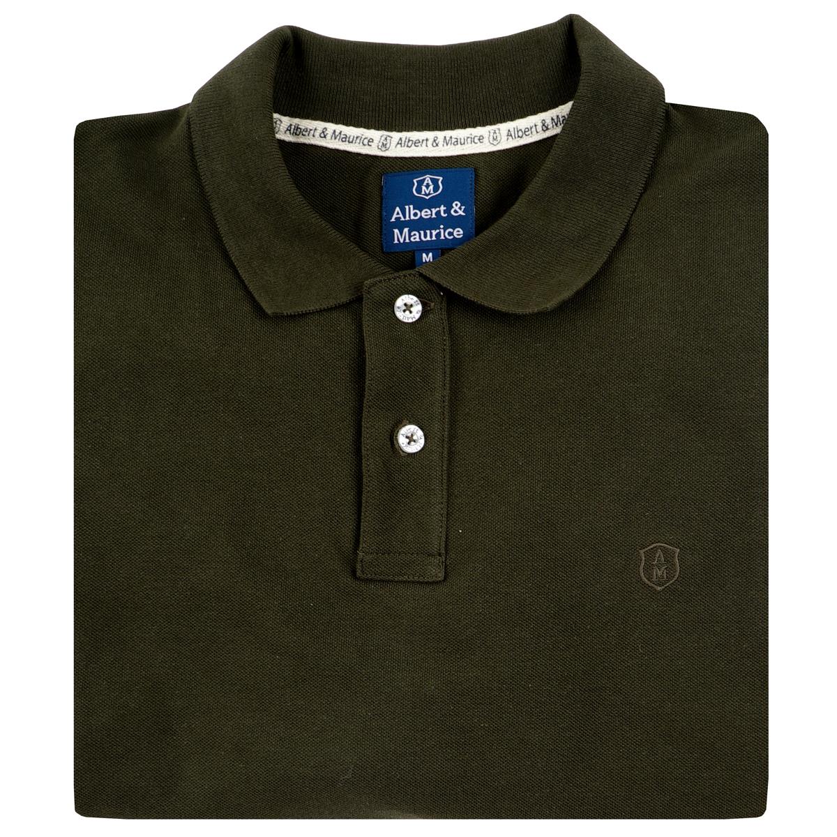 Introducing the Albert & Maurice Mens Classic Piqué Polo Shirt in Military Green. A timeless addition to any man's wardrobe that exudes both style and comfort. Crafted from 100% premium cotton, this polo shirt is designed with a regular fit for a classic silhouette that flatters all body types.