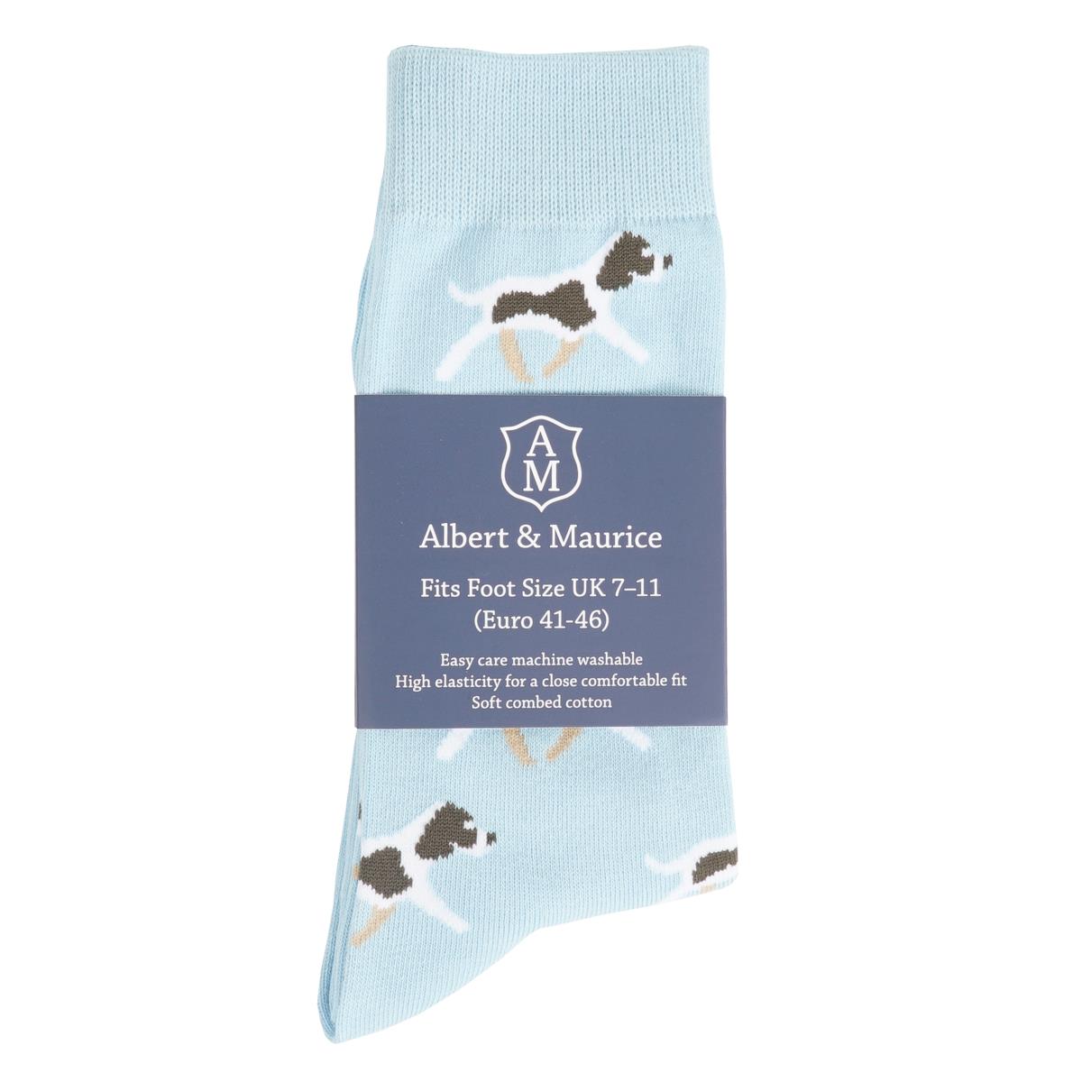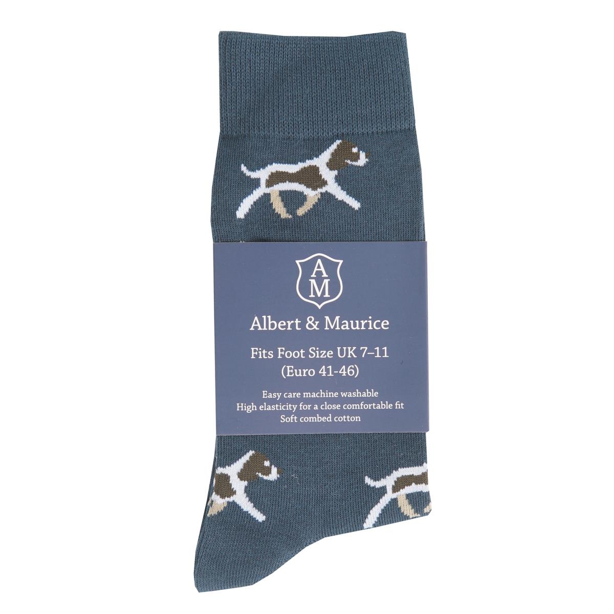 The Dog Socks from Albert & Maurice are the perfect gift for the country gentleman. The socks have been crafted from a soft combed cotton blend and feature an all-over dog motif design with a ribbed heel that has high elasticity for a close comfortable fit. Albert & Maurice socks are easy to care for and are machine washable.