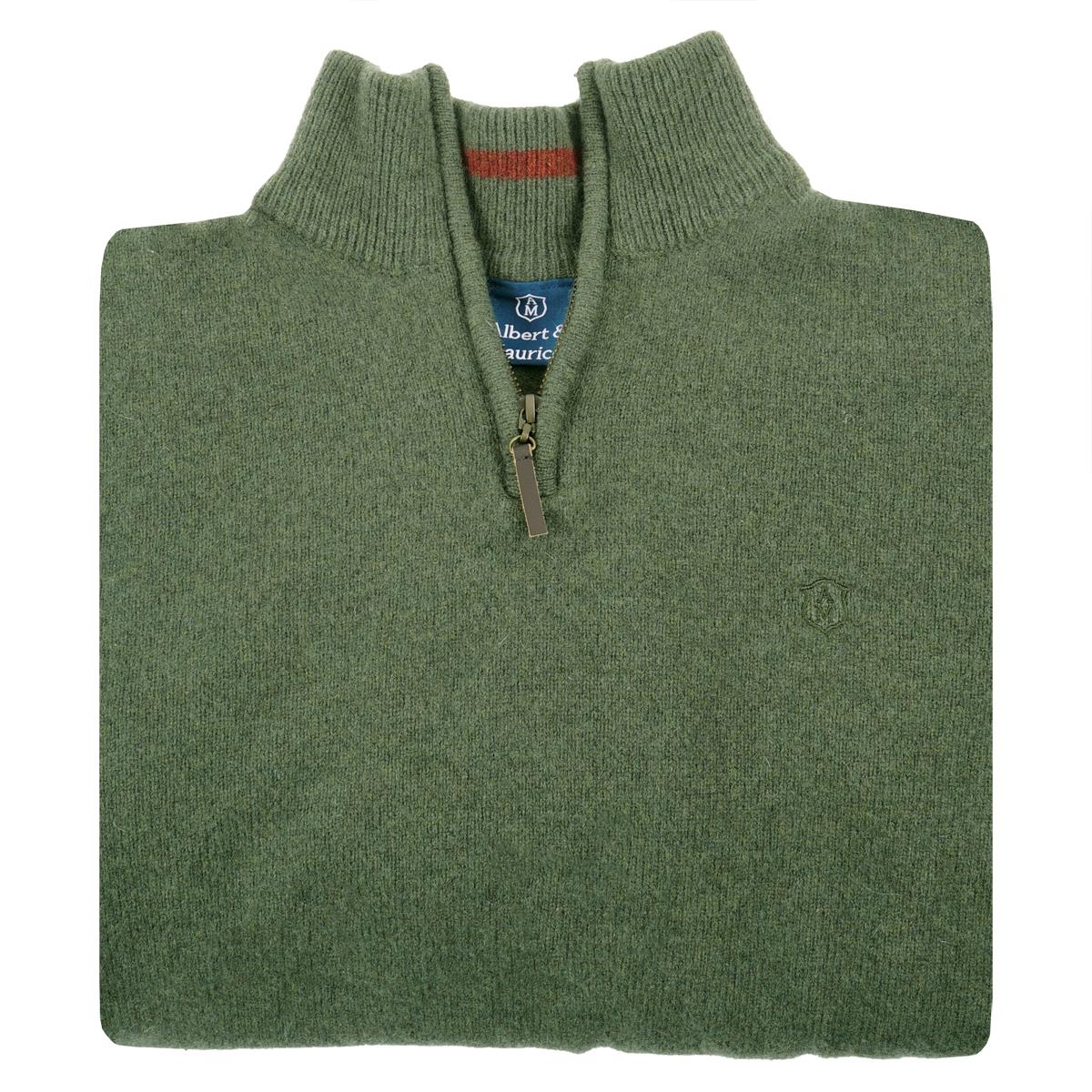 The Netherton Olive Zip Neck Jumper from Albert & Maurice is the first zip neck pullover jumper from the Herefordshire brand. This smart zip neck jumper has been crafted from 100% lambswool and features ribbed details on the neck, hem and cuffs. Excellent for the autumn and winter months, the jumper pairs perfectly with your favourite Albert & Maurice shirt when you need an extra layer to keep you warm. The Netherton Zip Neck Jumper has been designed in a comfortable regular fit with a classic, traditional country style. It has been beautifully finished with a contrast back inner neck and Albert & Maurice embroidered logo on the chest. Whether you're heading to the office, or need an extra layer when off on a countryside walk, the Netherton Zip Neck Lambswool Jumper is a great versatile piece of knitwear for multiple occasions.